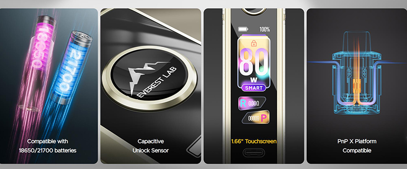 VOOPOO Drag X3 Kit , beklentilerin ötesinde bir buharlama dayanıklılığı sağlayacak harici 18650/21700 tek pil desteği sunar. Kapasitif kilit açma sensörü ve 1,65 inç akıllı dokunmatik ekranıyla VOOPOO Drag X3, hem güvenliği hem de anında etkileşimi ayağınıza getirir. PnP X Coil platformu ve yeni entegre kartuşun uyumluluğu sayesinde MTL'den DTL'ye kadar her türlü buharlama stilinde size rafine bir tat sunar.